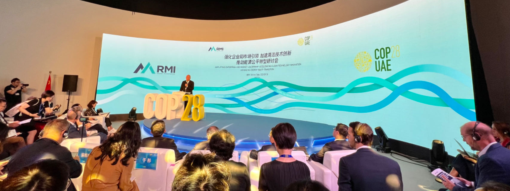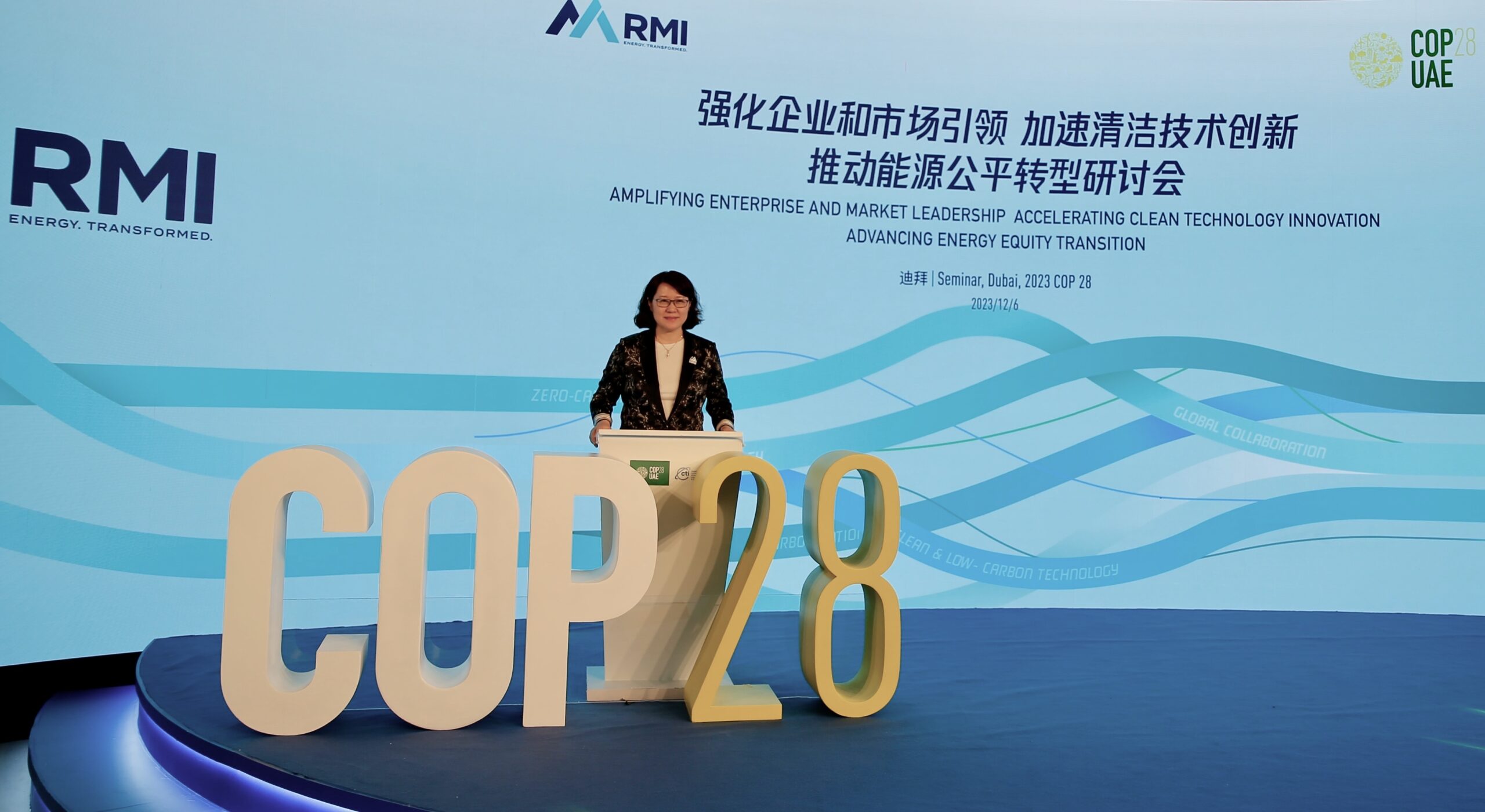 Dubai – December 6, 2023, At the 28th annual Conference of the Parties (COP28), RMI hosted “Amplifying Enterprise and Market Leadership, Accelerating Clean Technology Innovation and Advancing Energy Equity Transition Seminar” at the China Center, Dubai Expo City. Leaders, experts and representatives from governments, industries, enterprises and international organizations attended the seminar and jointly discussed strategies and actions to address climate change, focusing on enterprises and markets, technological innovation, and equitable transition.