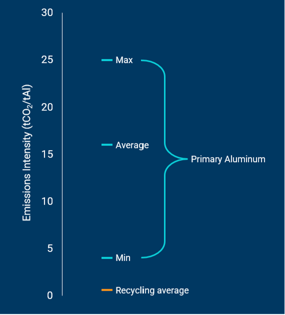 Exhibit 1: Variability in the emissions intensity of aluminum production | Source: International Aluminum Institute