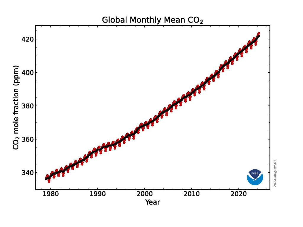 Source: NOAA, https://gml.noaa.gov/ccgg/trends/ Accessed July 1, 2024.